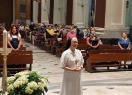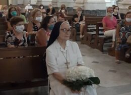 Mercoledì 12 agosto nella mia parrocchia “S. Maria Assunta e San Catello” abbiamo festeggiato una nostra cara sorella del convento delle Francescane Stimmatine che in questa data ha festeggiato i 60 anni di vita consacrata: Sr. Giovanna Gentile. Tutto è nato da una proposta di una nostra catechista Emilia Della Monica che ci ha avvisati dell’anniversario e in pochi giorni dal parroco agli altri operatori pastorali della parrocchia, ci siamo organizzati per una celebrazione eucaristica a sorpresa dedicata a lei. Le Cattepax (catechiste Cattedrale e Pace) hanno pensato a confezionare i confetti, ad avvisare tutti invitandoli a realizzare videomessaggi di auguri per lei e il nostro diacono Luigi Russo che ha provveduto al montaggio, ed ha mostrato subito dopo la S. Messa. Il nostro parroco don Antonino ha presieduto insieme a Luigi e al diacono Maurizio Longobardi, la celebrazione Eucaristica queste le sue parole: