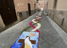 I tappeti vengono tradizionalmente realizzati con fiori partendo da un disegno base. Per i contorni, al fine di esaltare figure e geometrie, viene utilizzata torba o fondi di caffè. Il resto, è un lavoro certosino fatto di sfumature, accostamenti di colori, ricerca di chiaroscuro e profondità. Così le strade si trasformano in una galleria d’arte, un viaggio nella bellezza. Tantissimi i presenti, mossi in corteo, che hanno voluto rendere omaggio a una delle più antiche tradizioni della città.