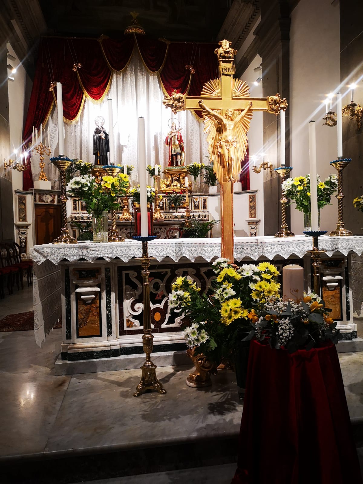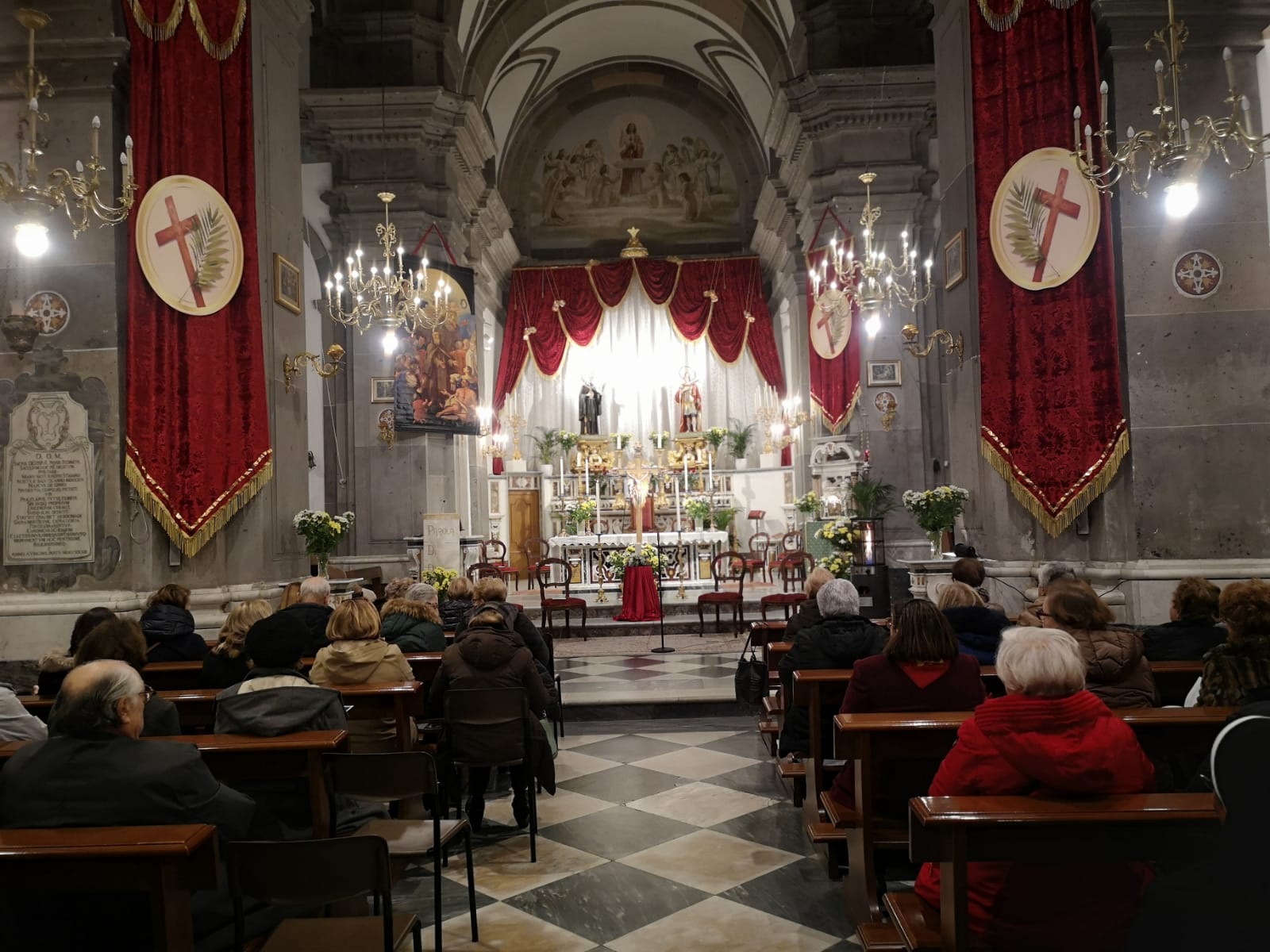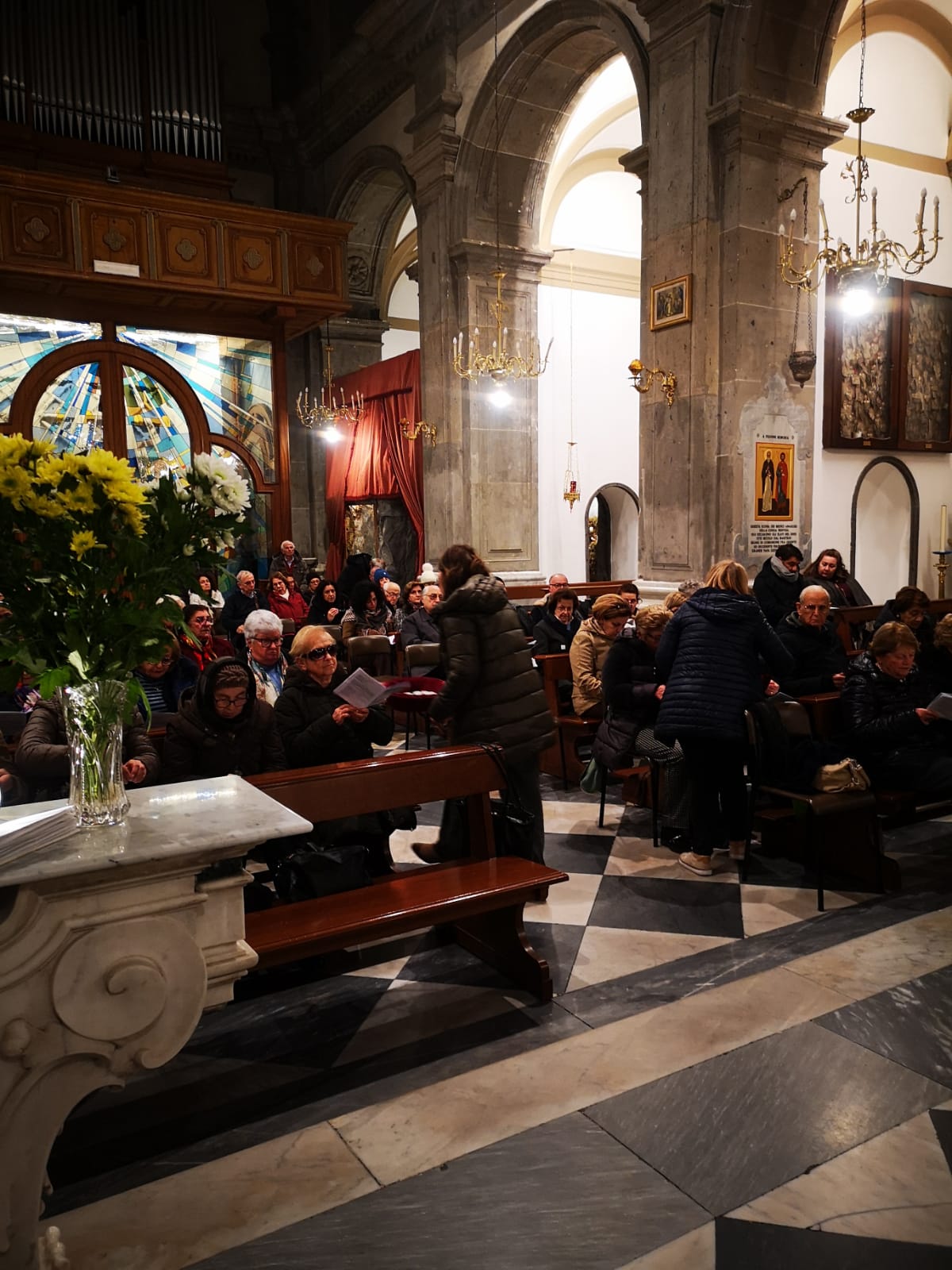 Nella cornice della chiesa dei santi martiri dei primi secoli Ciro e Giovanni, nell’atmosfera anche della preparazione alla festa patronale, abbiamo vissuto, come apertura della novena questo momento intenso di preghiera che ha fatto veramente bene al cuore dei tanti presenti: lo si percepiva dalla partecipazione attenta dell’assemblea, dal coro che con professionalità ha accompagnato i vari momenti, lo si leggeva negli occhi dei fedeli che brillavano mentre avevano tra le mani la candela accesa, segno della comune fede, una luce che è stata portata prima della recita del Credo dai quattro celebranti a tutta l’assemblea, e traspariva nel volto delle persone al termine dell’incontro.