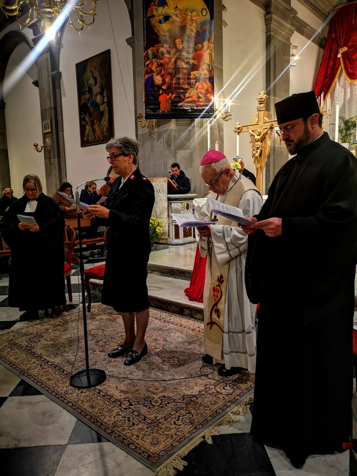 Erano presenti il nostro arcivescovo, Mons. Francesco Alfano, la pastora valdese Letizia Tomassone, la maggiore dell’Esercito della Salvezza Lidia Bruno, il presbitero ortodosso padre Michele Povaliaiev.