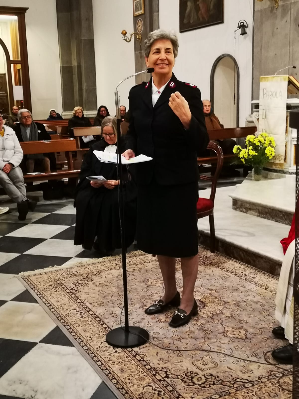 La maggiore dell’Esercito della Salvezza, Lidia Bruno, con tanta affabilità ha iniziato affermando che la presenza di ognuno di noi sta a significare che amiamo il Signore e che lo abbiamo messo al primo posto, e poi, richiamandosi alla Parola, ha sottolineato l’importanza di camminare in modo degno del Vangelo che abbiamo ricevuto, che vuol dire essere degni della vocazione che abbiamo ricevuto affinché la nostra opera renda gloria a Dio.
