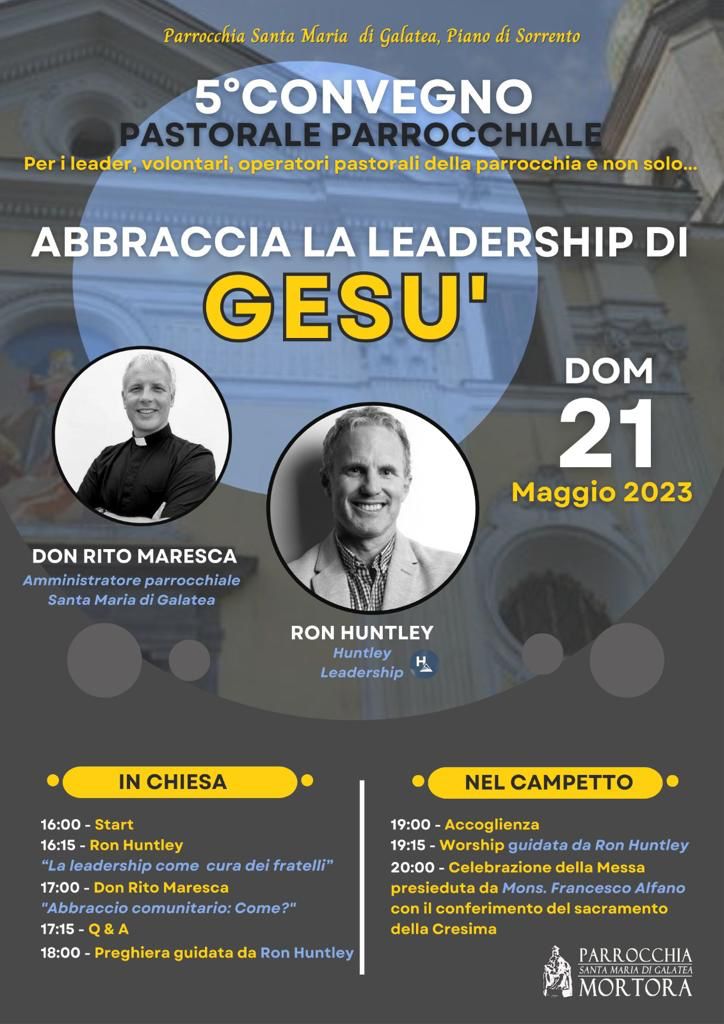 Domenica 21 maggio a partire dalle ore 16 la parrocchia di Santa Maria di Galatea di Mortora si accinge a vivere il suo quinto convegno pastorale parrocchiale dal titolo “Abbraccia la Leadership di Gesù”.