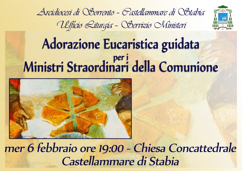 Carissimi! Il mese di febbraio ci presenta un nuovo appuntamento nell’itinerario annuale dei Ministri Straordinari della Comunione: un’ora di Adorazione guidata alla presenza di Gesù Eucaristia. È vero che ciascuno di noi ha già i propri momenti di preghiera personale e comunitaria, ma sarà bello vivere l’incontro con il Signore in una cornice speciale che ci ricorda la bellezza dell’essere Chiesa diocesana, in cammino nella Compagnia degli uomini.