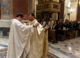 Ogni volta che pongo la domanda <<sei certo che ne sia degno?>> mi sento piccolo. Questo breve dialogo ci consente di entrare nel rito del sacramento che celebriamo con immensa dignità. Caro Pasquale, questa sera ti presenti così come sei, con la tua storia, agli amici, ai presbiteri. Ti stai impegnando a cogliere il rapporto profondo con i tuoi docenti e con la grande famiglia che è la Chiesa, alla scoperta di quel dono che Dio fa a noi. Il tuo impegno diventa la risposta che dai al Signore avendoti egli toccato profondamente il cuore. Incontrerai nel tuo percorso tanti uomini e donne, donati loro fine alla fine, ricordandoti sempre che il suo operato passa ai margini. Ti viene data la possibilità di collaborare all’opera di Dio: fallo ogni giorno anche quando ti costerà qualche lacrima. Non dimenticare mai che siamo i discepoli del crocifisso risorto. Sia la tua vita un dono perché questa beatitudine cresca li dove il Signore ti spingerà ad offrire il servizio del tuo ministero” – le parole di Mons. Alfano nel corso dell’omelia.