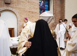 Dopo l’omelia c’è stata l’Interrogazione della neo-eletta, poi le Litanie dei Santi, la preghiera di Benedizione, la consegna della Regola e infine l’Abbraccio di Pace.