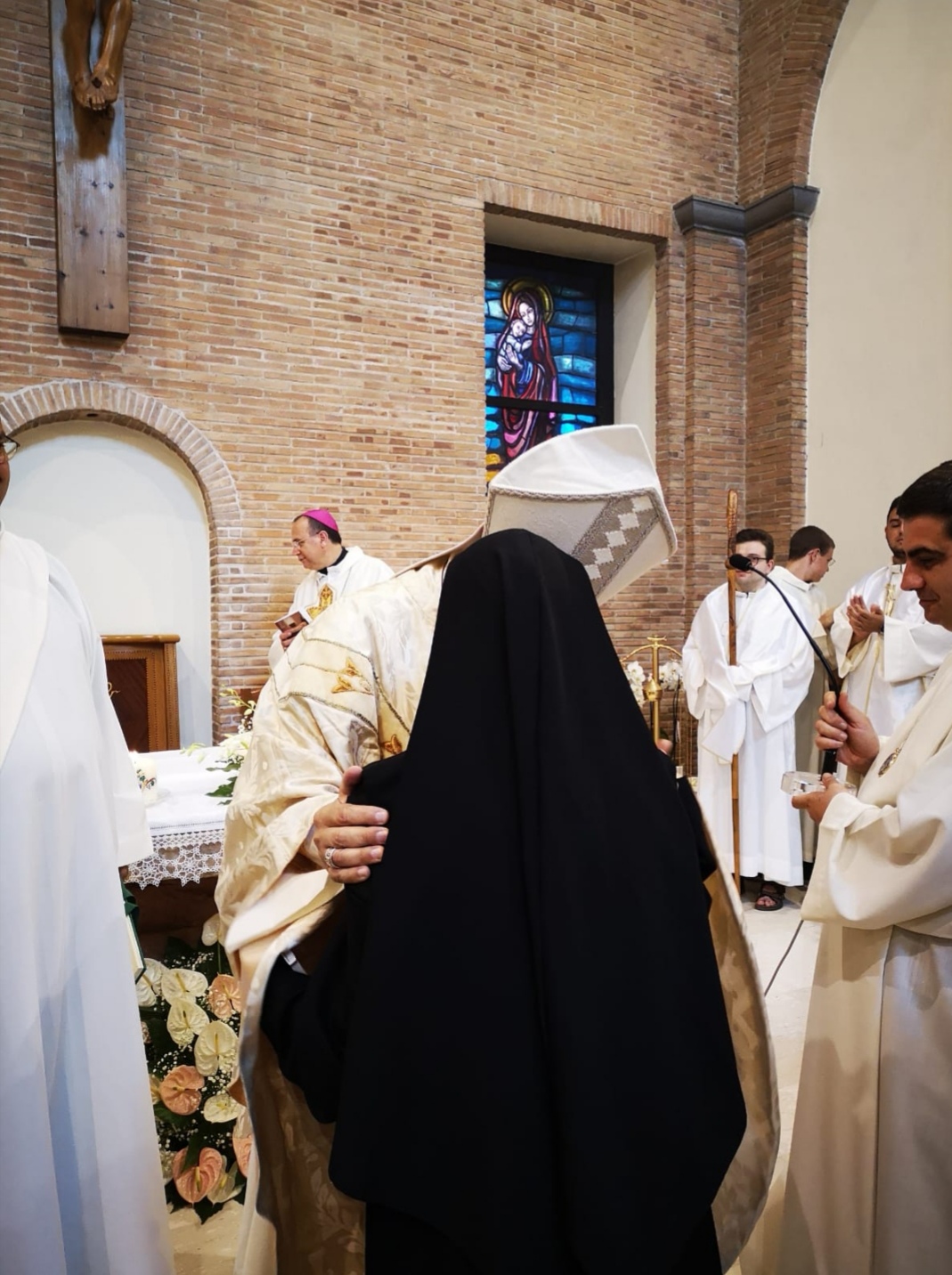 Dopo l’omelia c’è stata l’Interrogazione della neo-eletta, poi le Litanie dei Santi, la preghiera di Benedizione, la consegna della Regola e infine l’Abbraccio di Pace.