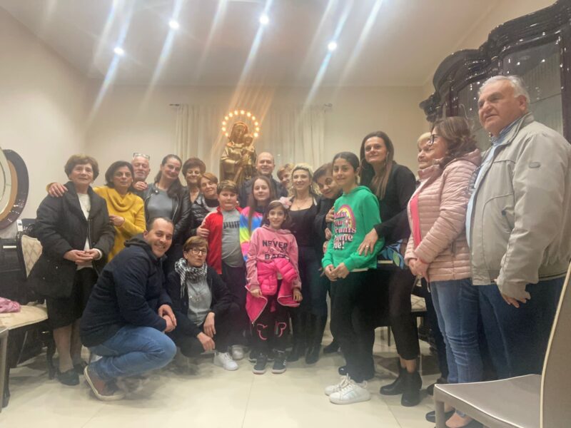 Le famiglie organizzano dei cenacoli di preghiera coinvolgendo il quartiere o il palazzo, intono al quale riunirsi per pregare insieme a chi lo desidera. Anche Don Gennaro si unisce alla preghiera, accompagnando i presenti con una riflessione alla sera. Il giorno dopo la statua viene presa e portata a mano in un’altra famiglia, che si prepara ad accoglierla.