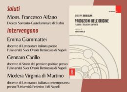 Castellammare di Stabia. Sarà presentato lunedì 4 novembre, presso la Parrocchia del Carmine, il libro “Produzioni dell’Origine” di Giuseppe Guglielmi. Alla presentazione con l’autore, moderata dalla docente Universitaria di Letteratura Italiana Contemporanea Virginia Di Martino, parteciperanno Mons. Francesco Alfano , la docente universitaria di Letteratura Italiana Emma Giammattei, il professore di Storia del Pensiero Politico […]