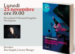 Il 25 novembre, in occasione della Giornata Internazionale per l’eliminazione della violenza contro le donne, a Vico Equense (Na) si terrà la presentazione del romanzo di Nunzia Mazzei – “Solo dieci minuti, prometto”. L’evento è organizzato dalla parrocchia di San Giovanni Evangelista – in località Bonea, guidata da don Mario Cavaliere, e dall’Associazione Don Pinuzzo, […]