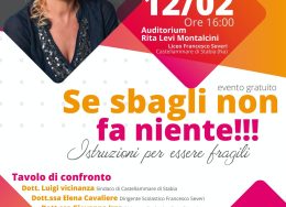 Con il patrocinio morale dell’ASL Napoli3Sud e del Comune di Castellammare di Stabia Mercoledì 12 FEBBRAIO ore 16.00 presso l’auditorium Rita Levi Montalcini, Liceo Francesco Saveri Castellammare di Stabia “Se sbagli non fa niente. Istruzioni per essere fragili”. Daremo il via ad un percorso che stimoli gli adolescenti, i giovani e gli adulti a trovare […]