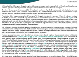In rappresentanza di circa 50mila aderenti e simpatizzanti, le 22 associazioni diocesane di Azione Cattolica della regione Campania, tra cui quella di Sorrento-Castellammare di Stabia, hanno inviato una lettera-appello a tutte le istituzioni perché fermino lattacco criminale alla nostra terra. Il presidente diocesano AC Sorrento-Castellammare di Stabia Gianfranco Aprea Al Ministro dellAmbiente Al Governatore della […]