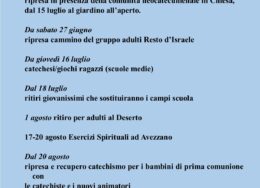 Dopo aver vissuto il consiglio pastorale parrocchiale, seppur nel contesto di precarietà che caratterizza in questo tempo ogni programmazione pastorale, abbiamo provato a riprendere le attività estive nella consapevolezza di dover essere prudenti e di vivere nella gradualità la ripresa delle attività pastorali, impegnandoci tutti a rispettare scrupolosamente le leggi vigenti per la sicurezza di […]