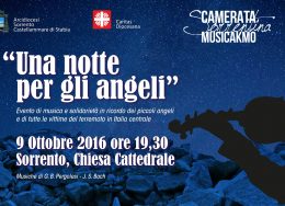 È con questa ammissione di umiltà che domenica 9 ottobre alle 19.00, nella cattedrale di Sorrento, il gruppo musicale Camerata Sorrentina si presenterà davanti alle persone che vorranno partecipare a questo evento organizzato dalla Curia della nostra Diocesi, in particolare dalla Caritas Diocesana. Il concerto dal nome Una notte per gli angeli parte dal […]