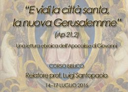 Aggiornameti: Carissimi, vi raggiungo per ricordarvi lappuntamento con il Corso Biblico E vidi la città santa, la nuova Gerusalemme (Ap21,2) con il professore Luigi Santopaolo nei giorni 14-17 luglio 2016. Il corso si terrà regolarmente perché ad oggi cè un discreto numero di partecipanti. Il termine ultimo di iscrizione è fissato per il 10 luglio […]