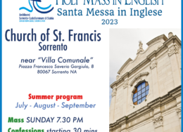 Ritorna la messa in inglese, presso la chiesa dei Padri Francescani di Sorrento. L’iniziativa, realizzata in sinergia con la Pastorale del Turismo, offre la possibilità, ai tanti turisti che arrivano nella nostra terra, della celebrazione e della confessione. Tutte le domeniche dei mesi di luglio, agosto e settembre, è in programma la Santa Messa alla […]
