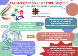 La nostra Caritas Diocesana Sorrento – Castellamare è presente nei nuovi bandi di Servizio Civile con 2 progetti: – Sempre positivi all’ascolto – Campania (4 posti, di cui uno riservato a giovani con difficoltà economiche con ISEE inf. € 15.000) – Risto – amici – Campania (4 posti, di cui uno riservato a giovani con […]