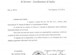 Don Catello Malafronte, in data 14 dicembre 2014, è stato nominato parroco della parrocchia di SantAntonio di Padova, a Castellammare di Stabia.