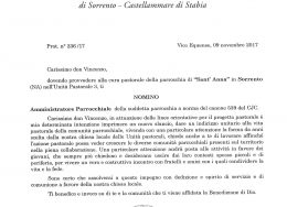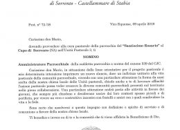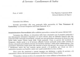 Amministratore Parrocchiale per la Parrocchia Santa Maria di Casarlano – Sorrento