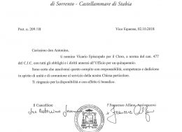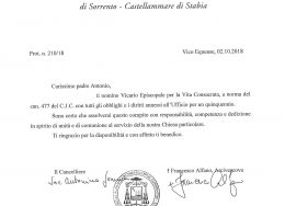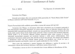 Don Antonino D’Esposito, in data 02 ottobre 2018, è stato nominato Vicario Episcopale per il Clero.