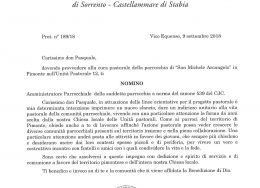Amministratore Parrocchiale per la Parrocchia San Michele Arcangelo – Pimonte