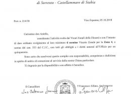 L’arcivescovo Mons. Francesco Alfano in data 8 dicembre 2018 ha nominato il nuovo Cancelliere nella persona di don Vincenzo Esposito. In seguito alle dimissioni dall’incarico di Cancelliere presentate da don Vincenzo Donnarumma, l’Arcivescovo ha provveduto ad affidare l’incarico a don Vincenzo Esposito (Junior). Esprimiamo a don Enzo la gratitudine e l’incoraggiamento e allo stesso tempo […]