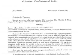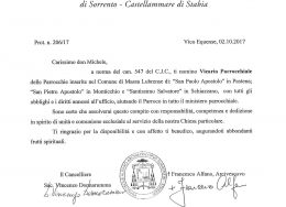 Amministratore Parrocchiale per la Parrocchia Santa Maria di Galatea – Piano di Sorrento