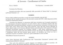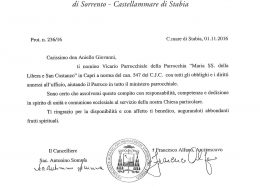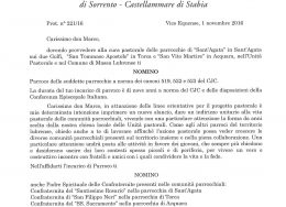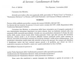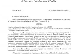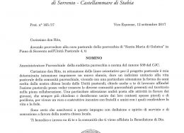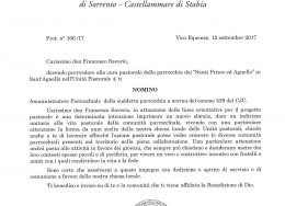 Amministratore Parrocchiale per la Parrocchia dei Santi Prisco ed Agnello – Sant'Agnello