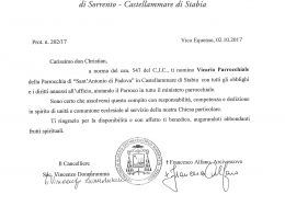 Don Christian Cicirelli, in data 2 ottobre 2017, è stato nominato Vicario Parrochiale della parrocchia Sant’Antonio di Padova in Castellammare di Stabia.