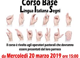 Mercoledì 13 febbraio è terminato il corso base L.I.S. (Lingua dei segni) iniziato l’8 novembre. Visto l’entusiasmo e l’interesse mostrato dai partecipanti, è stato deciso di ripeterlo. Il 20 marzo il corso ricomincerà per tutti gli operatori pastorali che vogliono vivere l’esperienza di acquisire una lingua nuova in maniera simpatica. Ci incontreremo Mercoledì 20 marzo […]