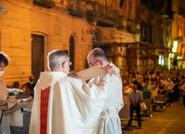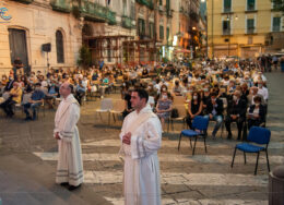 “Viviamo un dono straordinario questa sera, c’è il contributo di tutti. Ringraziamo chi ci ha dato la possibilità di radunarci in questa piazza cosi significativa per la nostra città e per la nostra chiesa, l’amministrazione comunale, le forze dell’ordine e i tanti volontari. Presentiamo al Signore il cammino di Antonino e Catello, che attraverso il ministero che riceveranno, potranno sperimentare e donare la misericordia del Padre” – è quanto ha dichiarato Mons. Francesco Alfano ieri sera, 14 settembre 2020, all’inaugurazione di una celebrazione speciale, svoltasi all’esterno della Concattedrale di Castellammare di Stabia.