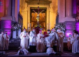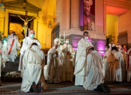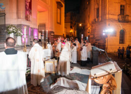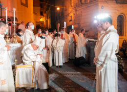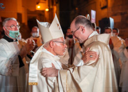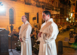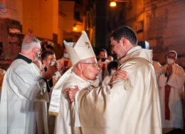 “Carissimi Antonino e Catello, siamo con voi. Oggi guardiamo la croce insieme e sperimentiamo il bisogno di essere raggiunti dallo sguardo di Cristo, nei vostri stessi nomi ci riportate ai nostri cammini di Chiesa, con le nostre storie cosi diverse e cosi significative. Cosa dice la croce a chi sente la necessità di mettersi al servizio di tutto il popolo di Dio? Di proclamare il suo Vangelo e renderlo visibile, attraente, credibile, in questa società che ne avverte il bisogno senza saperlo” – le parole di Mons. Alfano risuonano cariche di amore e responsabilità, abbracciate da un’atmosfera davvero suggestiva.