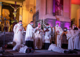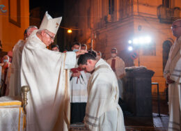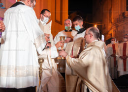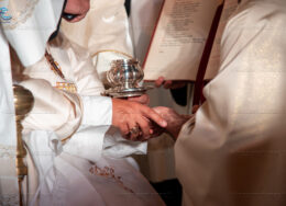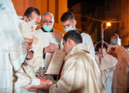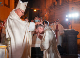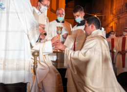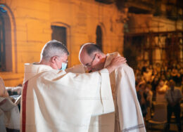Toccante come sempre il gesto dell’imposizione delle mani, eseguito del Vescovo e poi da tutti gli altri sacerdoti. A seguire, la vestizione degli abiti e l’unzione crismale. Ad Antonino e Catello sono stati affidati, i segni del pane e del vino, ed ancora il segno di pace. Un segno che quest’anno è mancato con i presenti, ma il popolo di Dio li ha abbracciati con il tutto cuore.