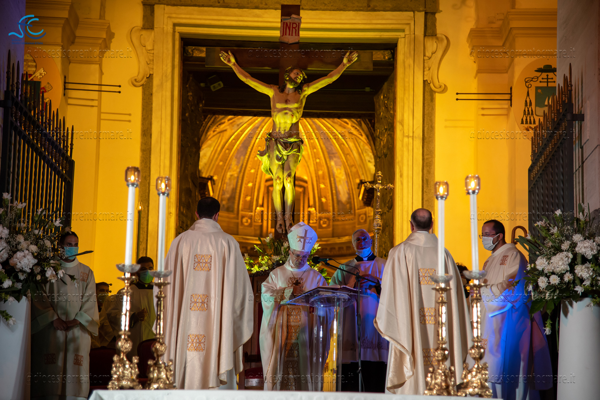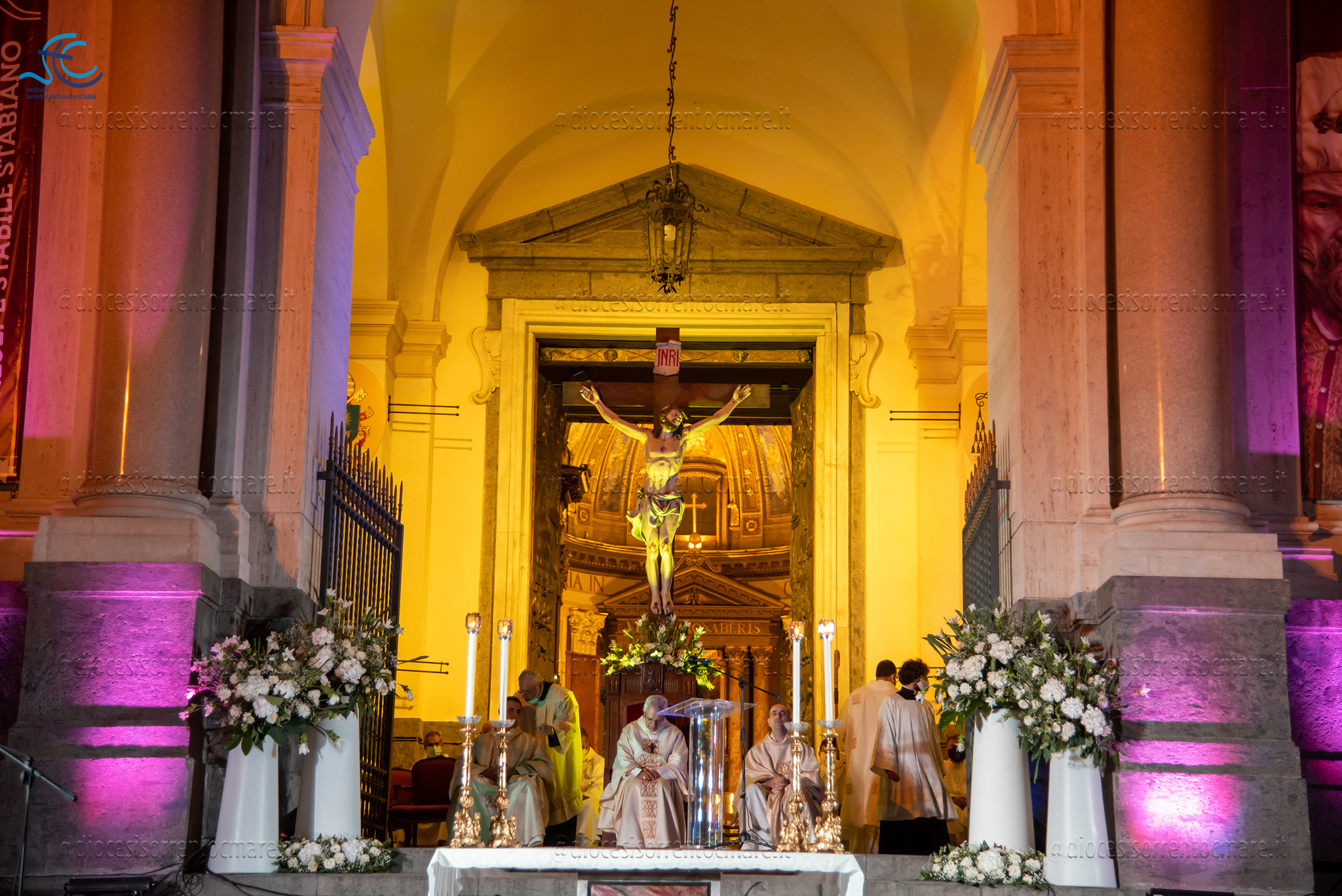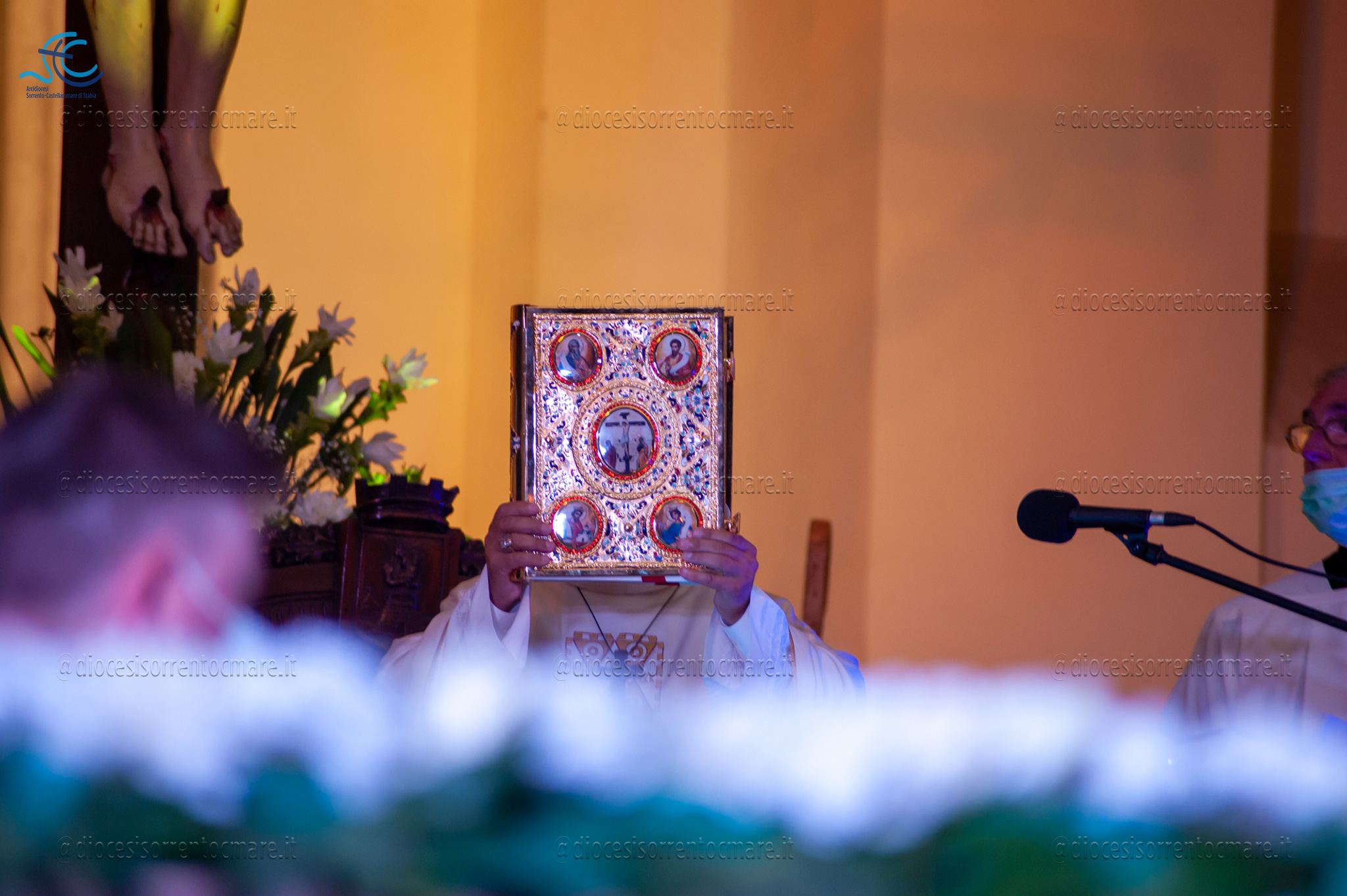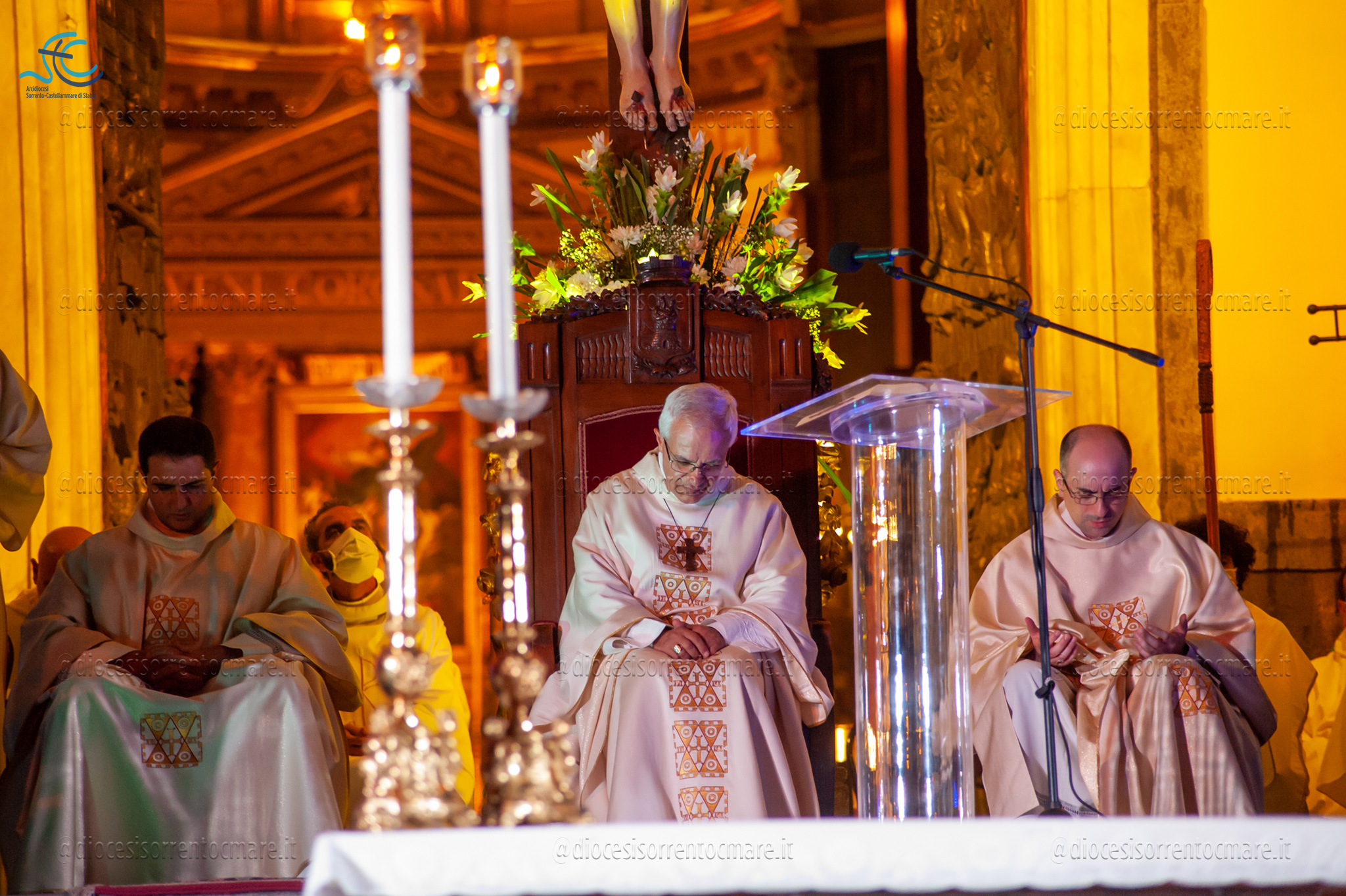 “Carissimi Antonino e Catello, siamo con voi. Oggi guardiamo la croce insieme e sperimentiamo il bisogno di essere raggiunti dallo sguardo di Cristo, nei vostri stessi nomi ci riportate ai nostri cammini di Chiesa, con le nostre storie cosi diverse e cosi significative. Cosa dice la croce a chi sente la necessità di mettersi al servizio di tutto il popolo di Dio? Di proclamare il suo Vangelo e renderlo visibile, attraente, credibile, in questa società che ne avverte il bisogno senza saperlo” – le parole di Mons. Alfano risuonano cariche di amore e responsabilità, abbracciate da un’atmosfera davvero suggestiva.