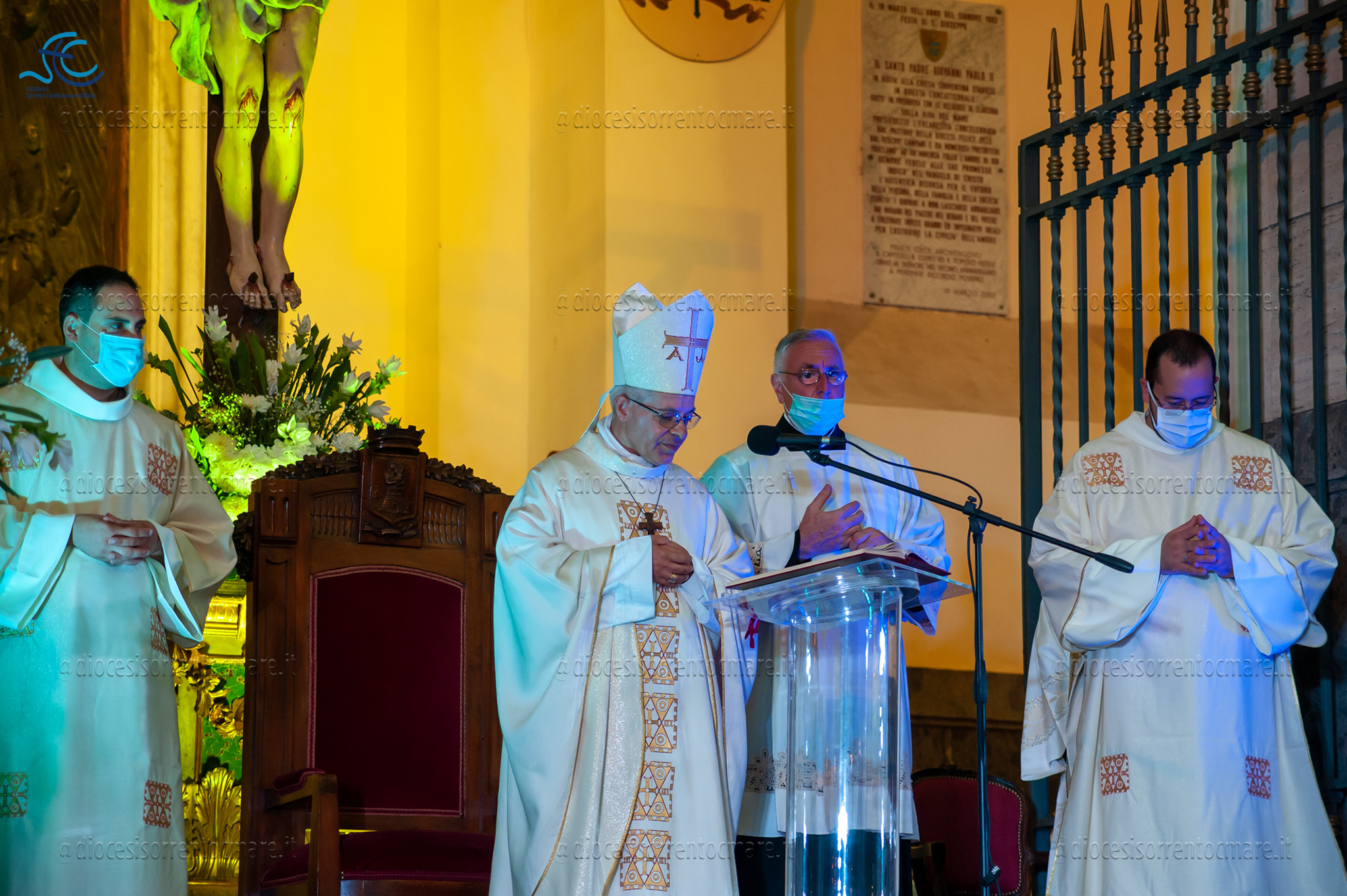 “Viviamo un dono straordinario questa sera, c’è il contributo di tutti. Ringraziamo chi ci ha dato la possibilità di radunarci in questa piazza cosi significativa per la nostra città e per la nostra chiesa, l’amministrazione comunale, le forze dell’ordine e i tanti volontari. Presentiamo al Signore il cammino di Antonino e Catello, che attraverso il ministero che riceveranno, potranno sperimentare e donare la misericordia del Padre” – è quanto ha dichiarato Mons. Francesco Alfano ieri sera, 14 settembre 2020, all’inaugurazione di una celebrazione speciale, svoltasi all’esterno della Concattedrale di Castellammare di Stabia.