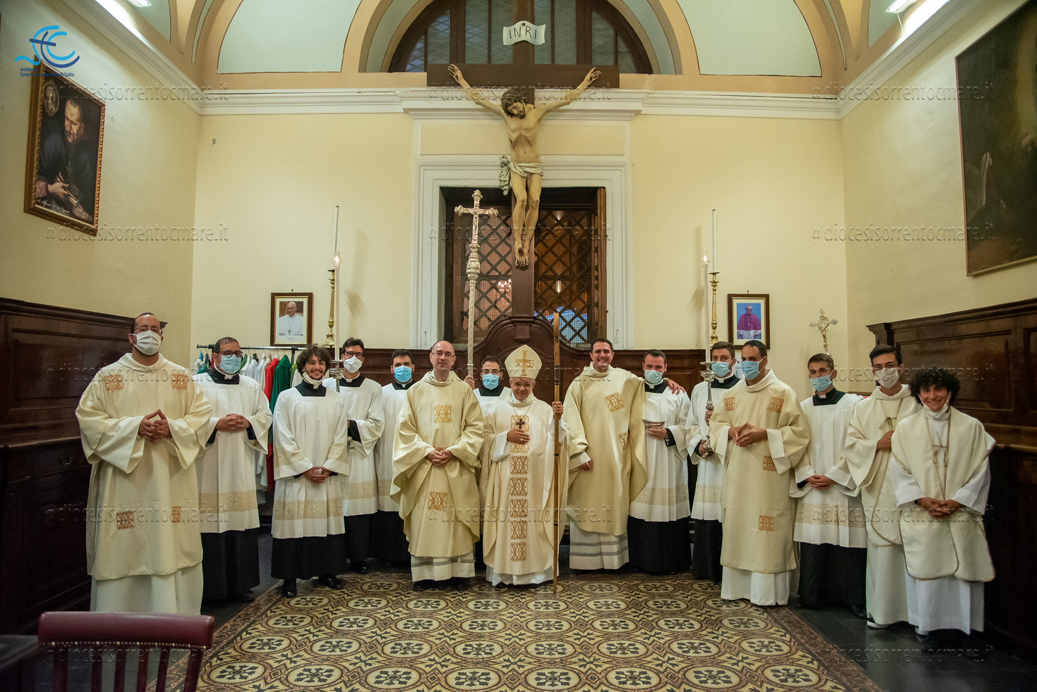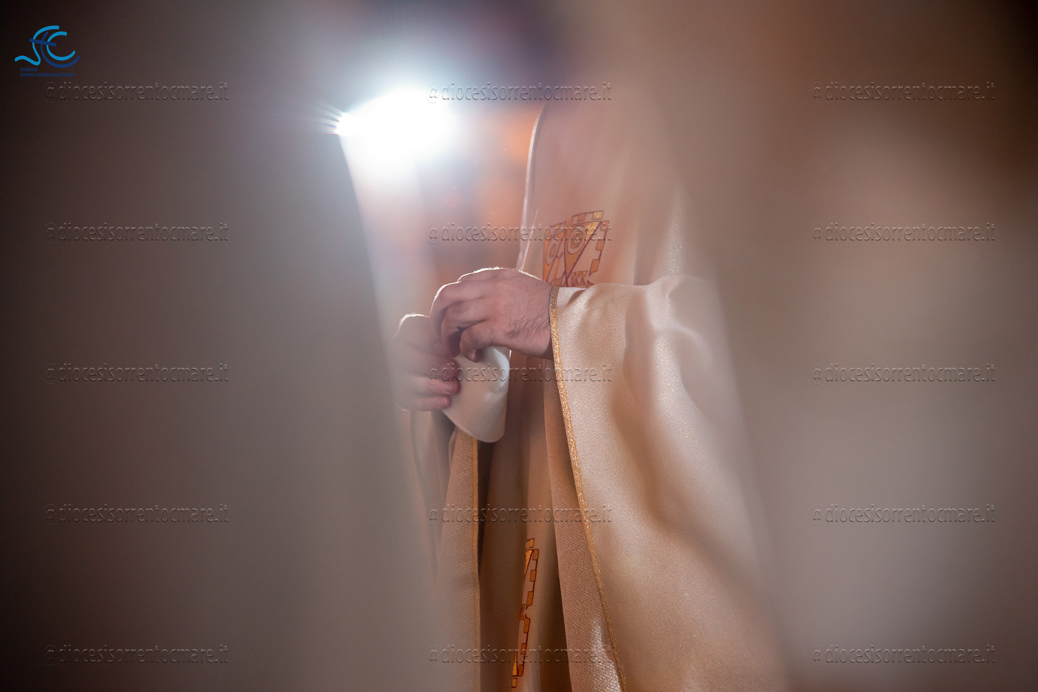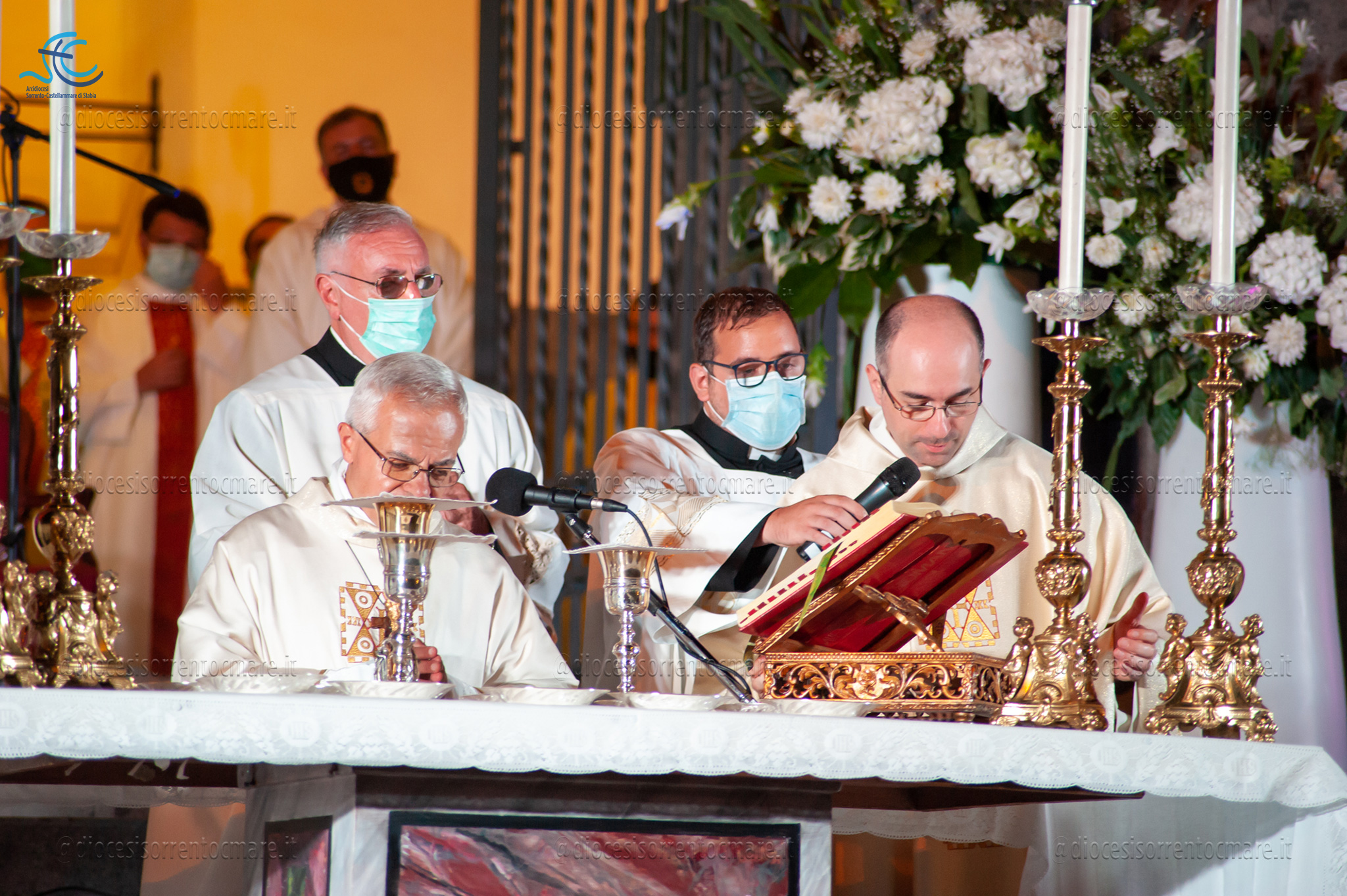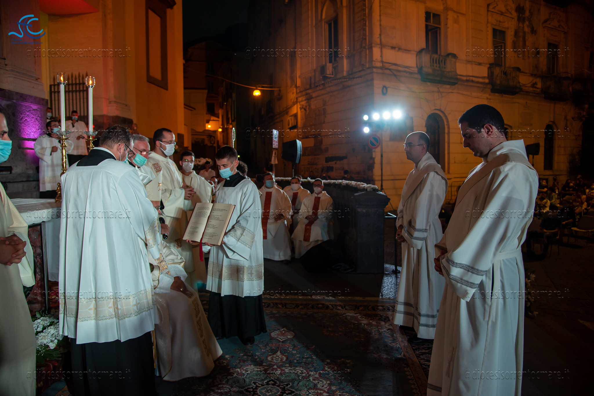 Ad esplicare i riti durante la celebrazione, accanto a Mons. Alfano, il Vicario Generale Don Mario Cafiero, Don Antonino d’Esposito, Vicario per il Clero ed il Rettore del Seminario di Posillipo Don Francesco Beneduce.