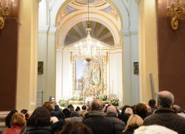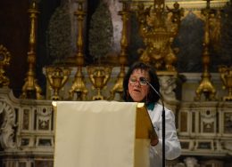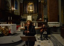 Si arriva pian piano, qualcuno si ferma a salutare gli amici, qualcuno è ancora fuori, sul sagrato; ma appena la bravissima Rosalba Spagnuolo apre l’incontro col primo dei canto dedicati a Maria, accompagnata dalla chitarra di suo marito Francesco Cesarano, tutti si affrettano a prendere posto, in un silenzio carico di ascolto.