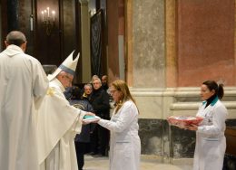 E questo senso del dono gratuito ci viene testimoniato dai tanti volontari presenti, dal mondo della salute, dalle Associazioni, come l’AVO territoriale, presente in folta delegazione, e dai Volontari dell’Opera Diocesana Pellegrinaggi, instancabile e sollecita presenza amica. Ma tutti noi siamo invitati a vivere la gratuità. A donare, nella fiducia che riceveremo il centuplo. Donare, un po’ del nostro tempo e un po’ del nostro cuore: per consolare, accompagnare, condividere.