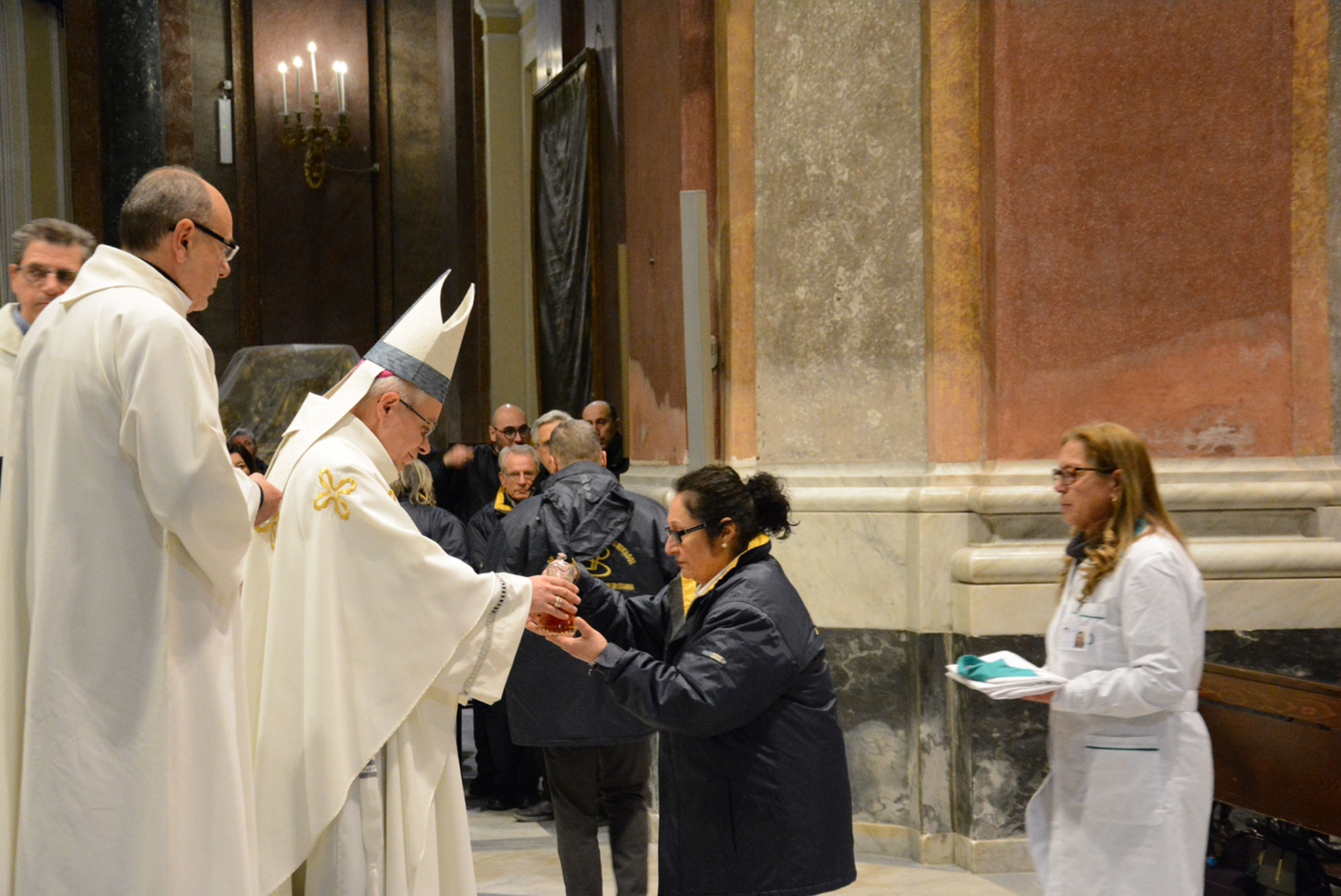 E questo senso del dono gratuito ci viene testimoniato dai tanti volontari presenti, dal mondo della salute, dalle Associazioni, come l’AVO territoriale, presente in folta delegazione, e dai Volontari dell’Opera Diocesana Pellegrinaggi, instancabile e sollecita presenza amica. Ma tutti noi siamo invitati a vivere la gratuità. A donare, nella fiducia che riceveremo il centuplo. Donare, un po’ del nostro tempo e un po’ del nostro cuore: per consolare, accompagnare, condividere.