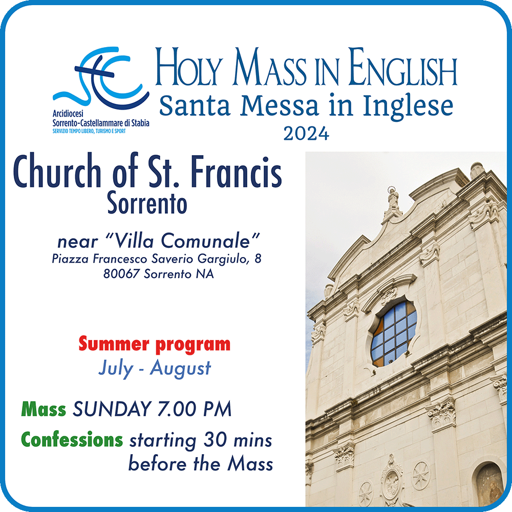 Riparte la messa in lingua inglese, prevista nei mesi di luglio e agosto, nella splendida cornice della Chiesa di San Francesco a Sorrento.