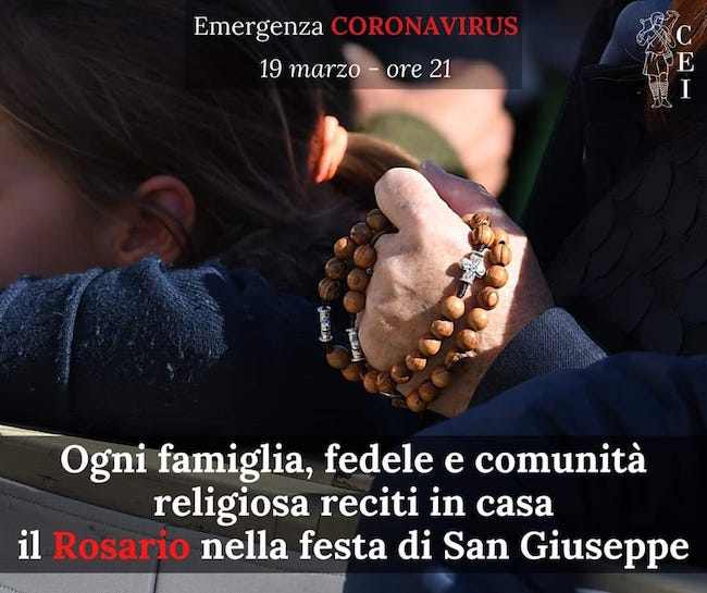 Giovedì 19 marzo alle ore 21:00 la Chiesa tutta si unirà nella preghiera del Santo Rosario