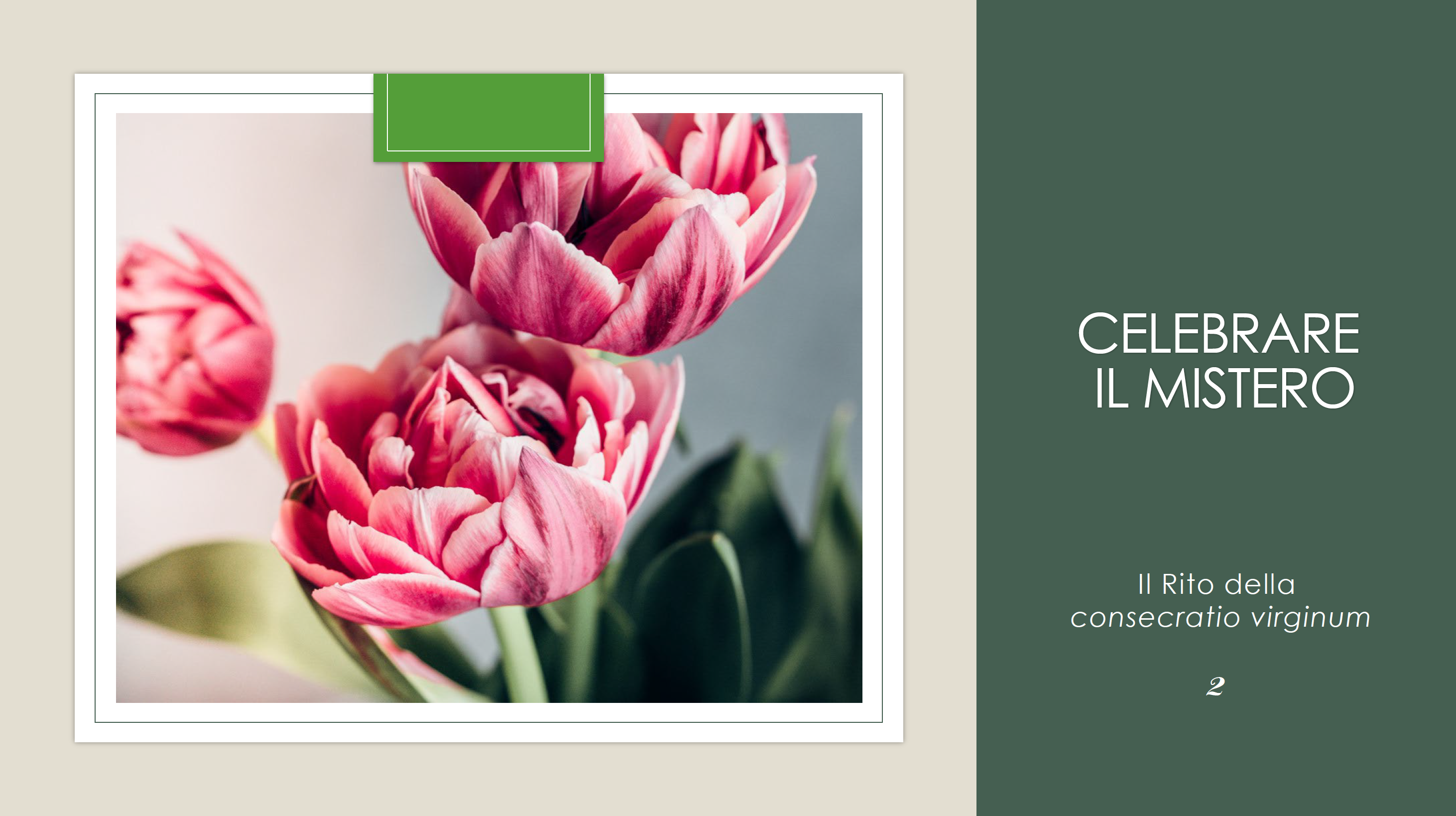 È apparso chiaramente fin dal primo incontro quanto la ricchezza liturgica espressa nel Rito fosse sorprendente e quanto il suo approfondimento ci aiuti a comprendere sempre più e meglio ciò che una vergine è chiamata ad essere. Il dono della verginità, all’origine della Consacrazione verginale, sorge, vive e cresce nella Chiesa e per la Chiesa; in questa realtà, infatti, vive il carisma della verginità che, dono del Padre, scende per mezzo del Figlio e dello Spirito Santo nel cuore di alcune donne, scelte e volute da Lui, per vivere la stessa realtà di Sposa di Cristo in modo speciale: la Chiesa trova nella consacrata il segno di ciò che lei è.