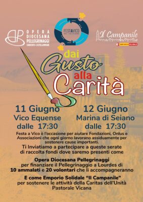 “Dai gusto alla carità”: l’Opera Diocesana Pellegrinaggi e l’Emporio Solidale “Il Campanile” saranno presenti a Festa a Vico, martedì 11 giugno e mercoledì 12 giugno.
