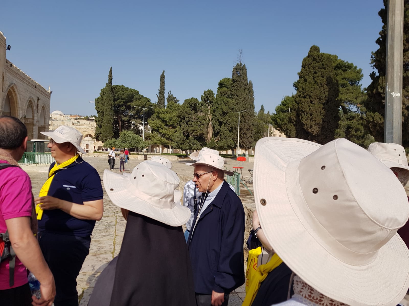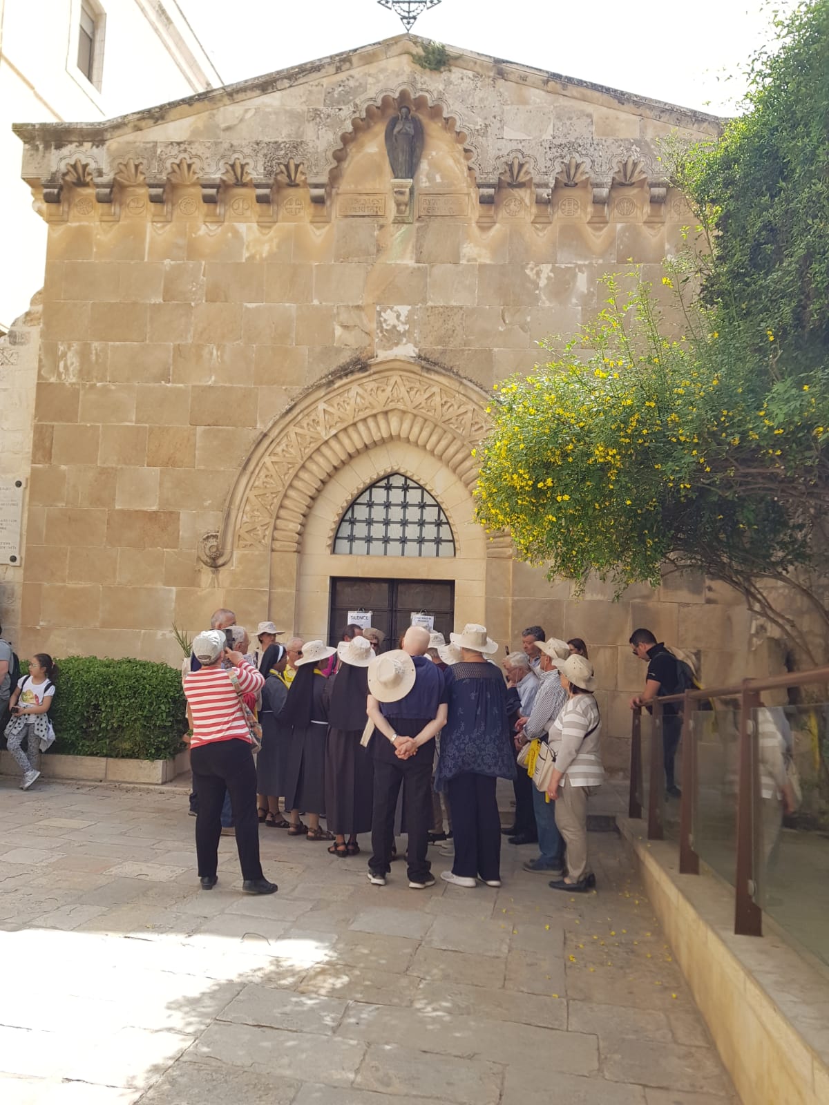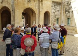 L’ultimo giorno del nostro pellegrinaggio in Terra Santa non è stato per nulla facile. E non tanto per la stanchezza accumulata nei giorni precedenti, che pure si è fatta sentire. Neppure per i numerosi siti visitati qui a Gerusalemme. No, la difficoltà è rappresentata dalla stessa città santa, considerata tale dalle tre gradi religioni monoteistiche: ebrei, cristiani e musulmani ritrovano in questa città, anche se in modo diverso, le radici della propria fede. Perciò la nostra prima tappa è consistita in una breve ma intensa sosta al Muro occidentale del tempio, più comunemente noto come il Muro del pianto: la preghiera degli ebrei, caratteristica per il dondolare del corpo e per i segni con cui lo ornano (dai diversi copricapi ai piccoli rotoli della Legge, avvolti sulla fronte e sulle braccia oltre che sulle frange del mantello o del vestito), in un primo momento incuriosisce ma poi apre il cuore al rispetto e alla gratitudine. Essi hanno conservato l’amore alla Scrittura, che venerano in modo viscerale. Ci testimoniano la fedeltà di Dio all’Alleanza e la speranza nell’attesa del suo compimento messianico, nonostante le tantissime prove lungo il corso dei secoli. Sono i nostri “fratelli maggiori”, come li chiamò Giovanni Paolo II, anche se l’espressione non è piaciuta a molti di loro per il riferimento alla storia biblica di Giacobbe ed Esaù. In ogni caso il legame che ci unisce nella fede è fortissimo, nonostante le divisioni e le incomprensioni che ancora si diffondono nelle rispettive comunità. Il Dio che si è rivelato qui ad Abramo sul Monte Moria, dove poi fu edificato il Tempio con il Sancta Sanctorum che custodiva l’arca dell’alleanza, ci aiuti a riconoscerci reciprocamente come suo Popolo, chiamato ad annunciare a tutti le sue opere meravigliose!