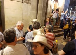 Finalmente l’ultima tappa, che ci ha impegnati fino al tardo pomeriggio: la morte e la risurrezione di Gesù Cristo! Abbiamo provato a seguirlo per la Via Dolorosa, dopo l’arresto e il doppio processo, quello ebraico con il sinedrio convocato di notte e quello romano davanti a Pilato. Arrivare al sepolcro non è stato semplice: insieme a tanti altri gruppi di pellegrini, tra le vie del mercato arabo, nell’indifferenza di tutti quelli che continuavano la loro attività commerciale e quelli che ti venivano appresso per venderti a ogni costo qualcosa. La salita al calvario, pochi gradini che portano al doppio altare della crocifissione, uno latino e uno ortodosso, è stata un’impresa e ancor più lunga la fila per inginocchiarsi e toccare la roccia su cui era fissata la croce. Molti parlavano tra di loro, facevano foto, si infastidivano per la lunga attesa: la mia preghiera è stata anche qui silenziosa e profonda, fino a sciogliere il cuore in lacrime di amore e di gratitudine per tanto amore che continua a non venir meno nonostante la nostra indifferenza. Il passaggio al Santo Sepolcro, con la fila ancora più lunga, che abbiamo evitato, ci ha permesso di gioire intimamente, andando ben oltre la curiosità del vedere e del toccare: Cristo è risorto, è veramente risorto! Uscire dalla basilica della risurrezione (titolo che meglio esprime il senso di questo edificio sacro e caro a tutti i cristiani) ci ha rimessi nell’atteggiamento di fede più giusto: quel Gesù che ha sofferto nel Getsemani e che ha chiesto al Padre di essere liberato dal calice della passione è lo stesso che poi si è totalmente affidato a Lui. La Messa celebrata nella chiesa del “Dominus flevit”, che ricorda il pianto di Gesù su Gerusalemme, ci ha aiutati a pregare per questa città e per tutte le città del mondo. Andiamo via dunque con urna grande speranza nel cuore, quasi un mandato missionario che ci impegna ad abitare i luoghi dove vive la gente con lo stesso amore di Cristo. Non sarà forse il modo migliore, quando torniamo a casa, di raccontare ciò che abbiamo visto e udito e che ha cambiato la mente e il cuore, rendendoci operatori di pace perché testimoni del Risorto? È la preghiera che mi fa guardare lontano, senza saltare nessuno volto e nessuna storia. Persino il giovane soldato israeliano, che questa mattina ci ha controllati nell’autobus mettendoci un po’ in agitazione perché armato, con il suo sorriso compiaciuto quando ci ha scoperti “napolitani” mi è sembrato portatore di un bell’augurio di pace: piccolo segno di un Dio che si nasconde in ognuno dei suoi figli e che ci ha oggi salutati con l’augurio pasquale dello SHALOM!