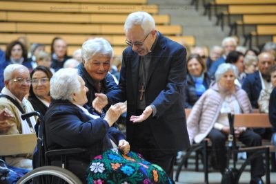 Il primo atto ufficiale qui a Lourdes è stato il ritrovarci tutti insieme per l’accoglienza festosa, organizzata dai volontari: la moderna basilica di S. Bernadette ci ha favoriti nell’esprimere la gioia della festa. Cerchiamo ogni anno di non trascurare questo momento, sottolineando la bellezza e l’importanza del saluto fraterno. La breve presentazione del tema dell’anno ci ha poi messi nella condizione migliore per entrare subito nel clima spirituale con cui vivremo questi giorni: la beatitudine della povertà ci rimanda alla scelta di Dio di stare sempre dalla parte dei suoi figli più poveri. Amiamo noi i poveri come li ama Lui? E soprattutto, riconosciamo la povertà sia materiale che spirituale come la condizione preziosa per aprirci alla beatitudine dei discepoli che accolgono l’annuncio del Regno?