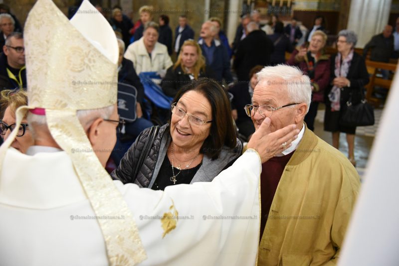 La celebrazione della Messa nella basilica del Rosario ha dato inizio alla giornata comunitaria. Come ogni anno abbiamo festeggiato gli anniversari di matrimonio e di ordinazione sacerdotale (cinquantesimi e venticinquesimi), ringraziando il Signore per i doni ricevuti e chiedendo di poter rendere le nostre famiglie sempre più segno del suo amore, in un vincolo di profonda amicizia e fraternità. La tradizionale foto di gruppo, alla fine della celebrazione, ha visto tutti i cinquecento pellegrini esprimere la gioia dello stare insieme in questo luogo che trasmette a tutti desideri generosi di santità.