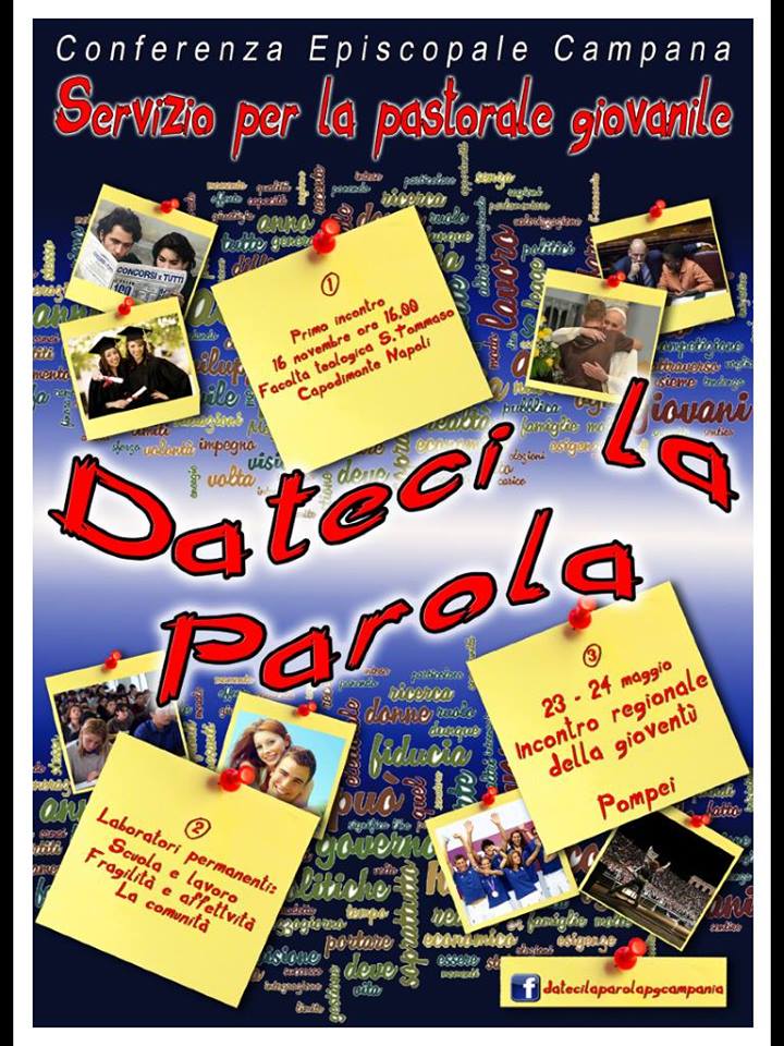 “Dateci la Parola”. È il titolo del convegno regionale sui giovani che si terrà sabato, 16 novembre, presso la Pontificia Facoltà Teologica di Capodimonte, a Napoli, dalle ore 16 alle 20. A promuoverlo è il Servizio per la pastorale giovanile della Conferenza episcopale campana.