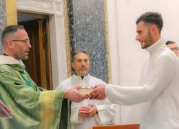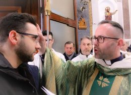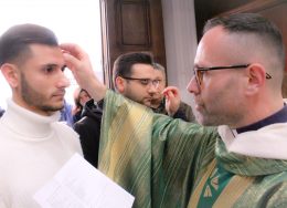 L’ultimo atto del rito, dopo la consegna del Vangelo e del crocifisso, è stato l’unzione sulle mani con l’olio dei catecumeni. Gesto significativo, che fortificherà Luca e Domenico, nel cammino che li condurrà alla celebrazione dei sacramenti dell’Iniziazione cristiana.