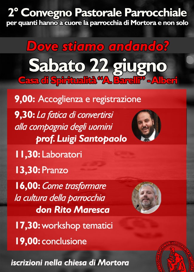 Al pomeriggio, don Rito M., amministratore parrocchiale di Mortora, ci ha condotti per mano ad 1una riflessione sulla realtà parrocchiale per tracciare una bozza di linea programmatica per il futuro. Attingendo alla Evangelii Gaudium e riprendendo la scrittura di At 10 ci siamo chiesti: cosa siamo oggi come comunità di Mortora all’interno della Chiesa diocesana e della Chiesa universale? Dove vogliamo andare come comunità? Cosa vogliamo essere? Cosa fare? Come cambiare la nostra mentalità pur a piccoli passi?