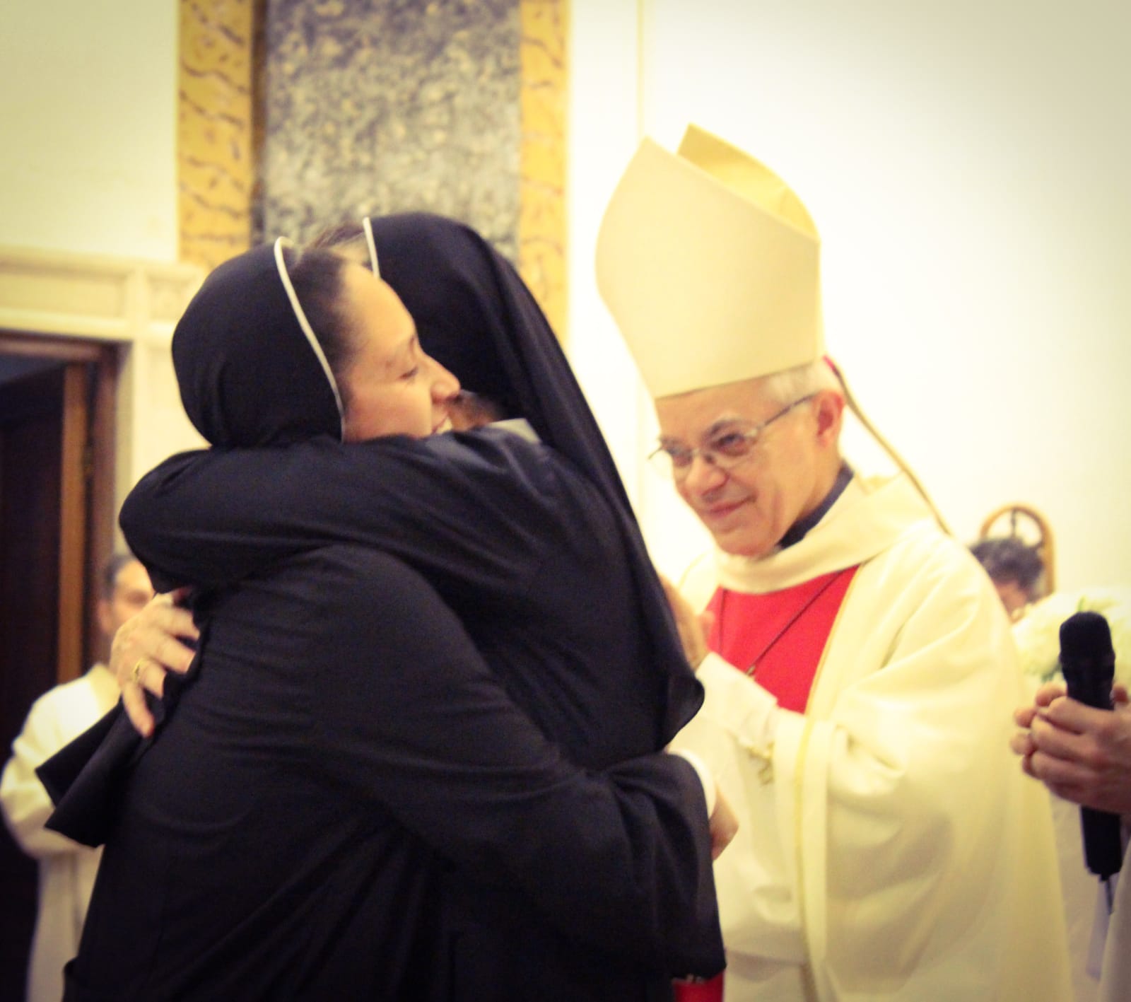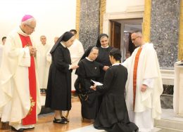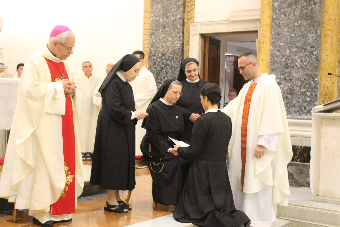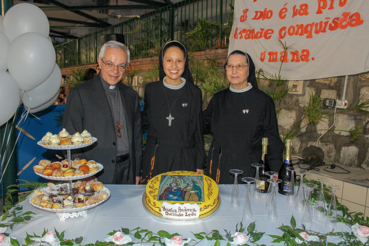Ed eravamo in tanti ad esultare e gioire: la novizia Yessica Andrea Quilindo Leon che, dopo aver percorso le tappe iniziali della formazione religiosa, ha coraggiosamente espresso, davanti alla Chiesa, il suo Sì a Colui che l’ha chiamata a vivere alla sua sequela, nella famiglia delle Religiose dei Sacri Cuori di Gesù e Maria. Ha gioito la madre Generale, sr. Maricla Lapenta, insieme alle consorelle, venute in rappresentanza da tutte le fraternità, presenti in Italia; hanno esultato di gioia le consorelle della Casa Madre che hanno potuto rivivere così la gioia del loro primo sì a Dio, quel sì che continuano a ripetere anche nella fragilità e sofferenza dell’età avanzata.